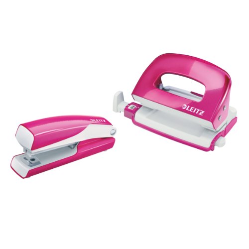 Esselte-Leitz 55612023 Nexxt Series WOW Set Mini Locher Heftgerät (Metall) pink metallic